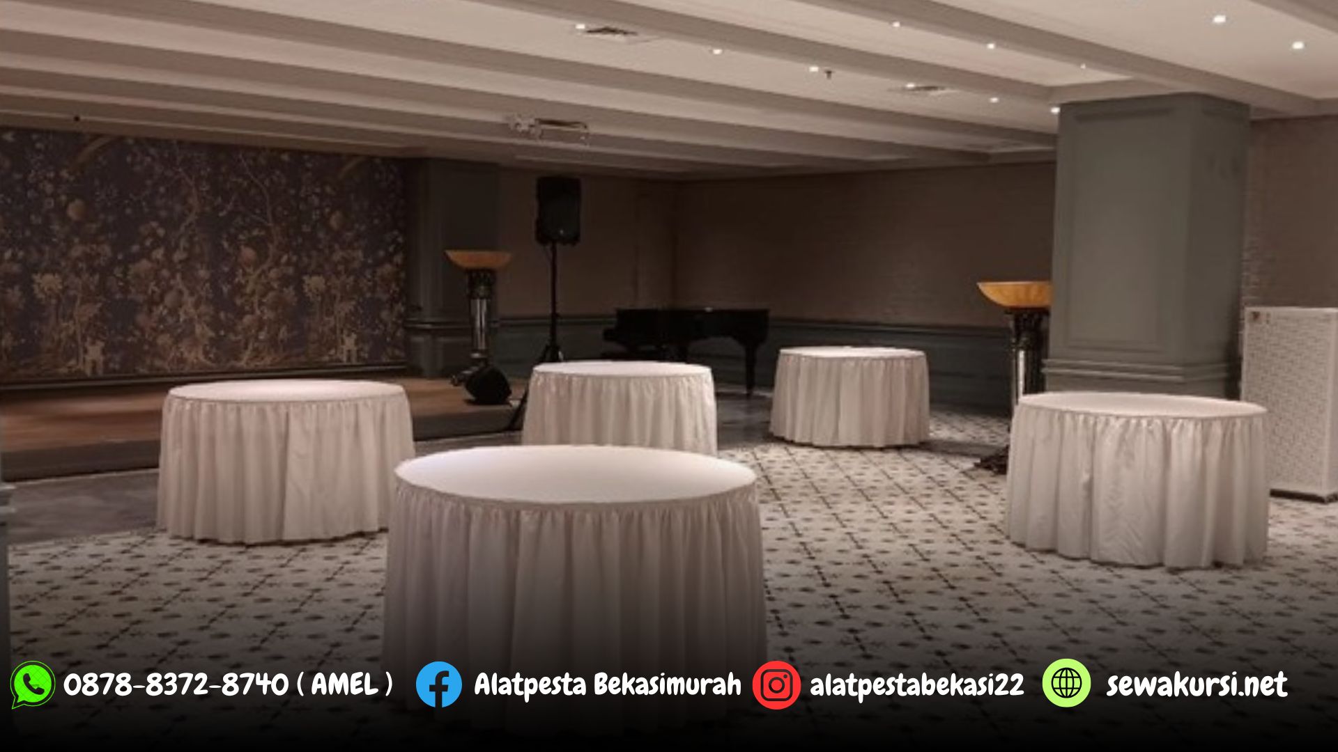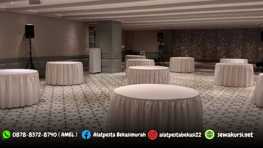 Jasa Sewa Meja Bundar Cover Skirting Putih Area Jakarta