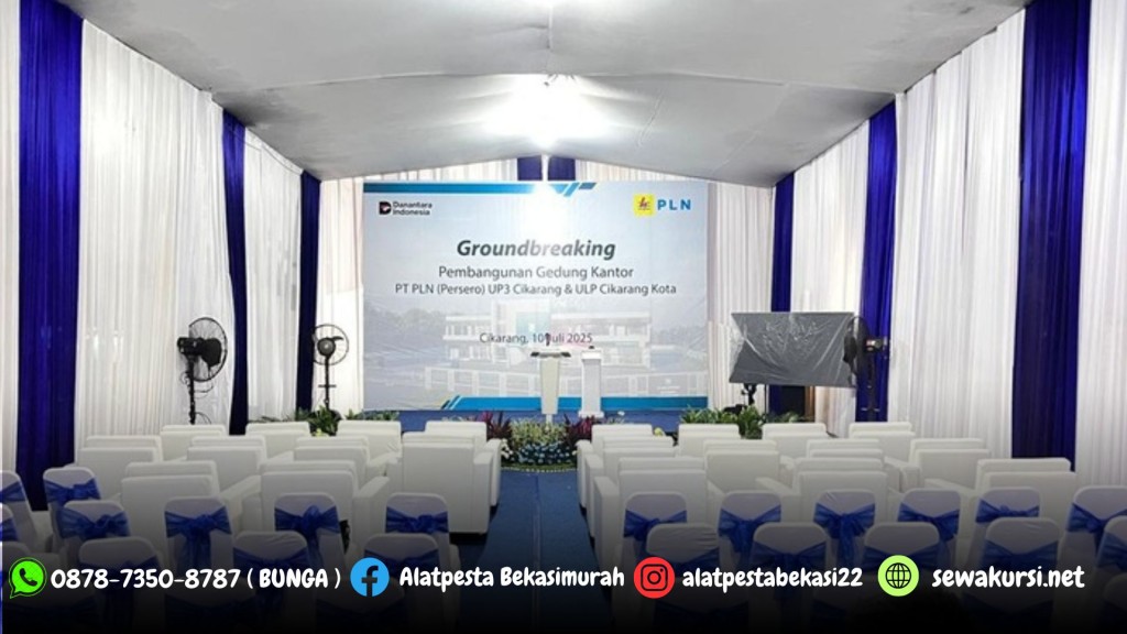 Sewa Tenda Plafon Tirai Biru Putih Cikarang Bekasi