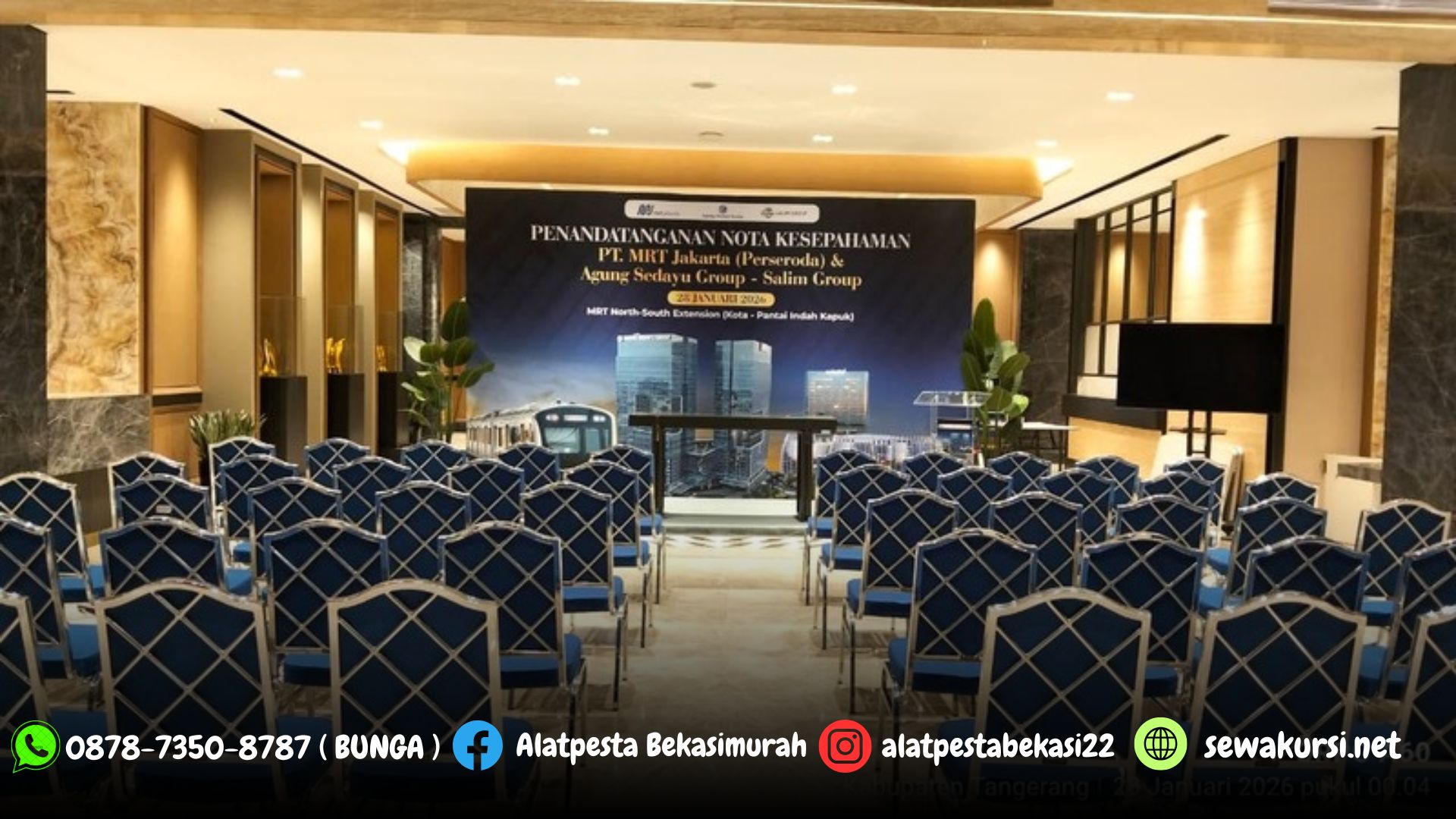 Pusat sewa alat pesta kami menyediakan Sewa Flooring dan Backdrop Event PIK 2 dengan pengiriman dan pemasangan langsung sesuai permintaan customer.