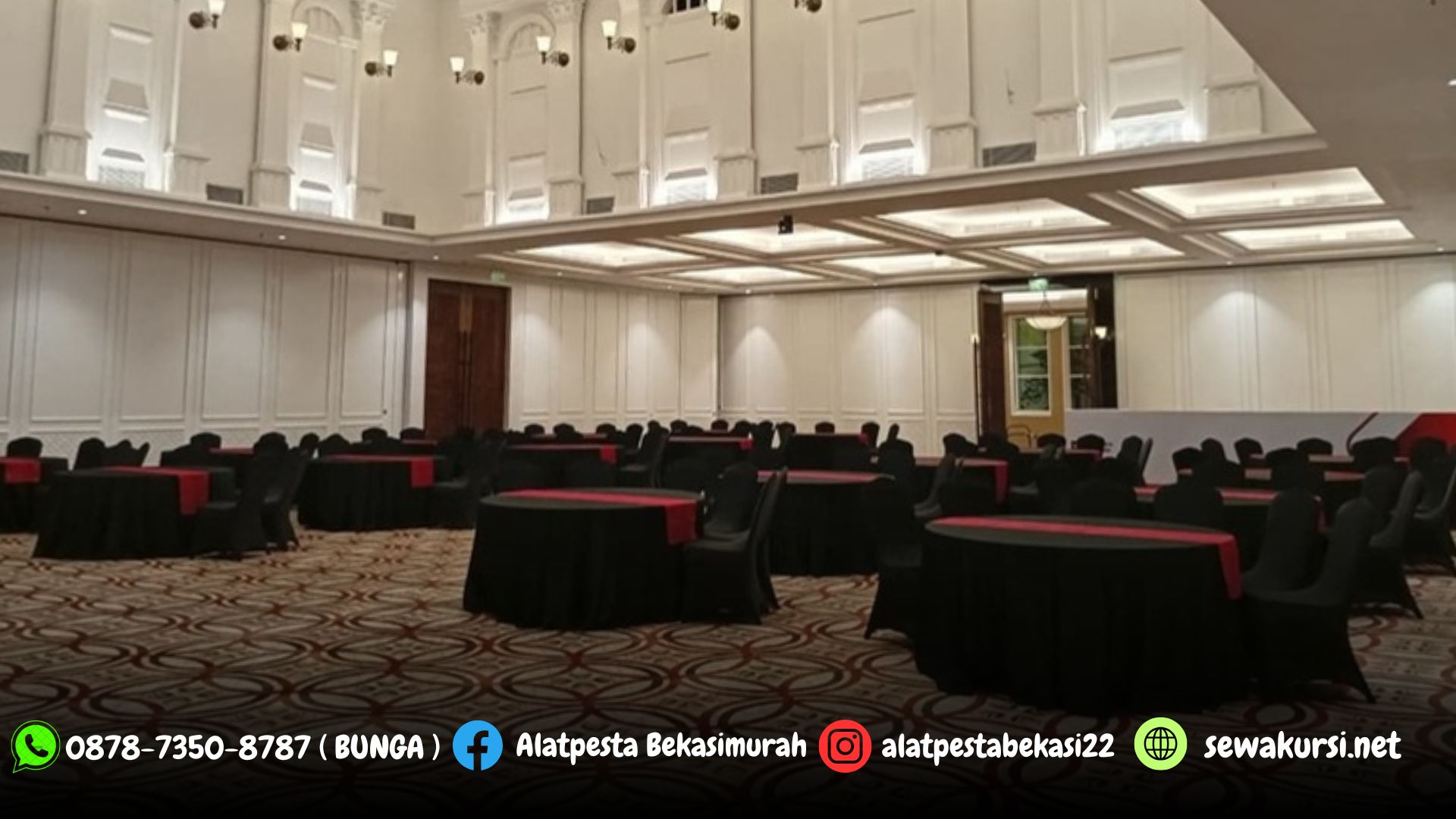 Alat pesta yang kami sewakan dengan kualitas terbaik, modelnya juga lebih kekinan dan modern, tentunya sudah memenuhi standar hotel. Untuk area pemasarannya meliputi wilayah jakarta, depok, bogor, tangerang, banten, serang, bekasi, cikarang, karawang, purwakarta, bandung, cianjur, sukabumi, subang dan sekitarnya.