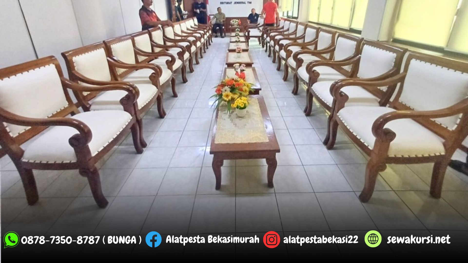 - Dekorasi: karpet buana, rumput sintetis, alat catering, alat prokes, mini garden, partisi, panggung, backdrop, misty cool, karpet permadani, lampu taman, cover meja dan kursi, podium tiang bendera, soundsystem, tirai, tiang antrian dll.